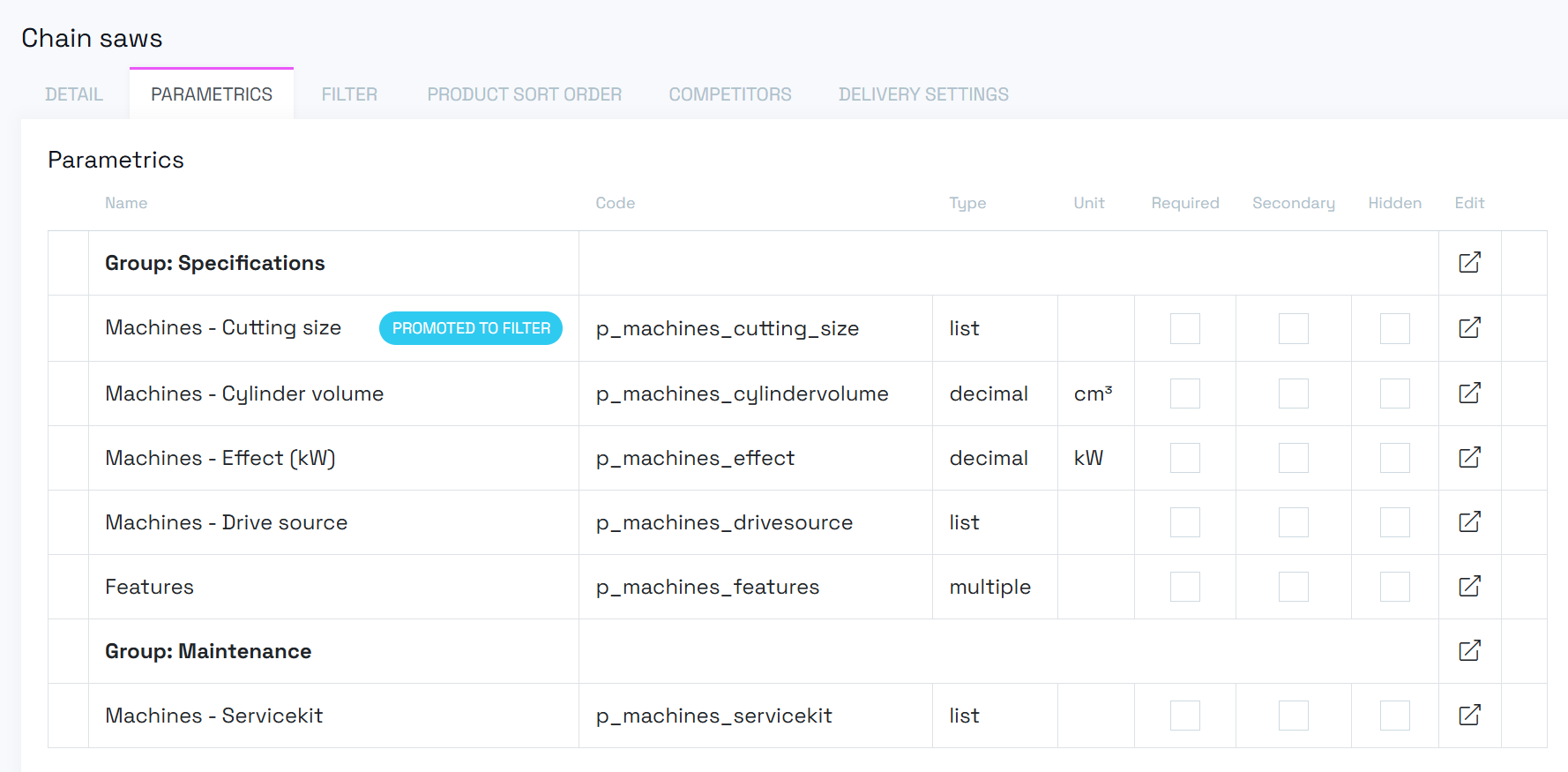 - Added clarity by using tags on the parametrics in the list, like "promoted to filter"